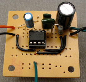 The audio output is fed to an LM386 audio amplifier IC mounted on a