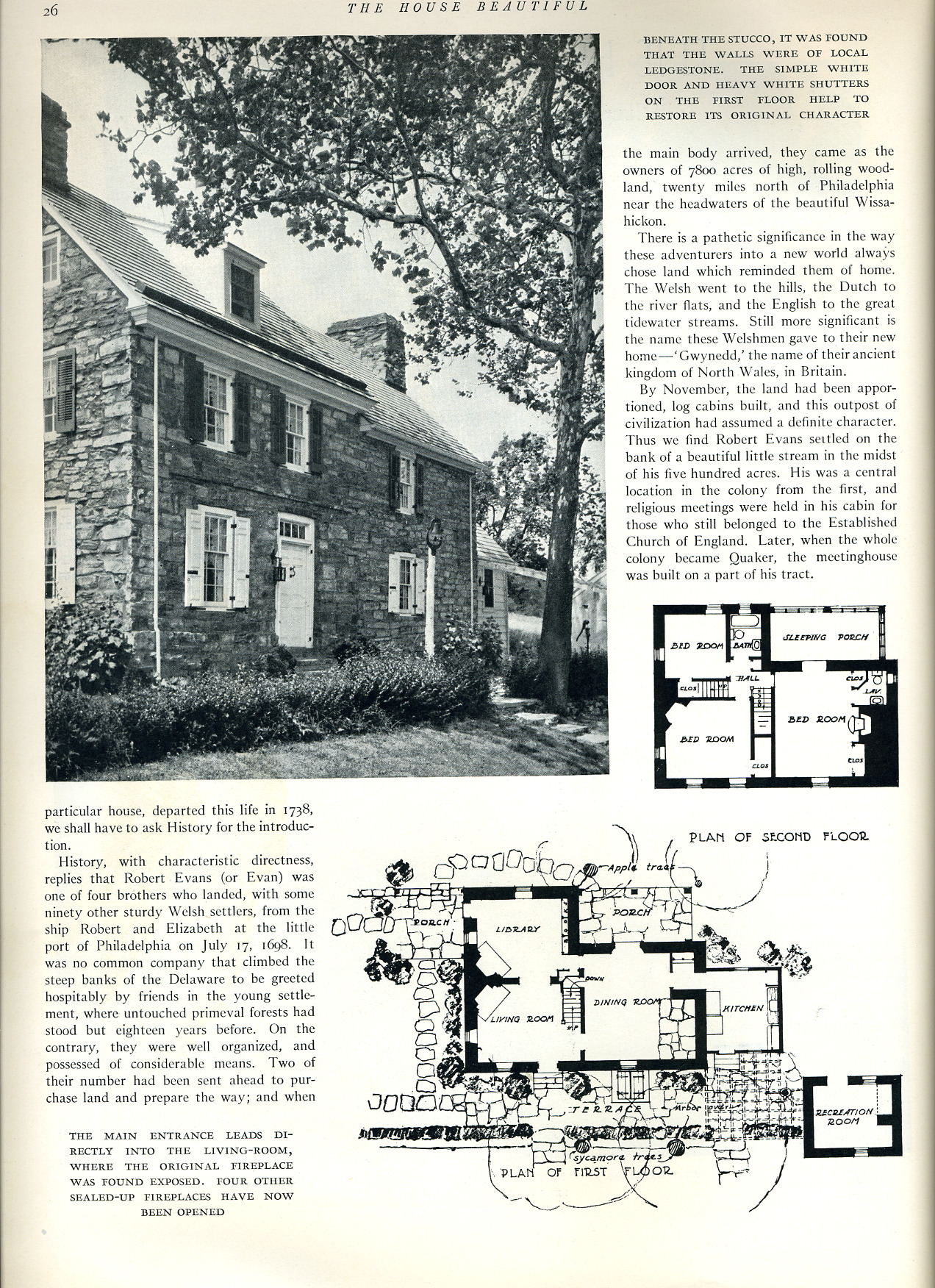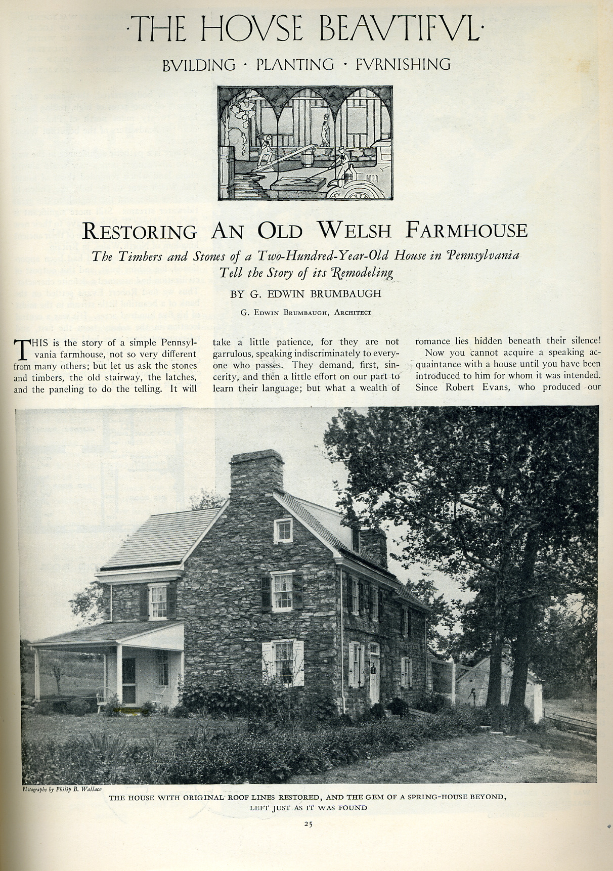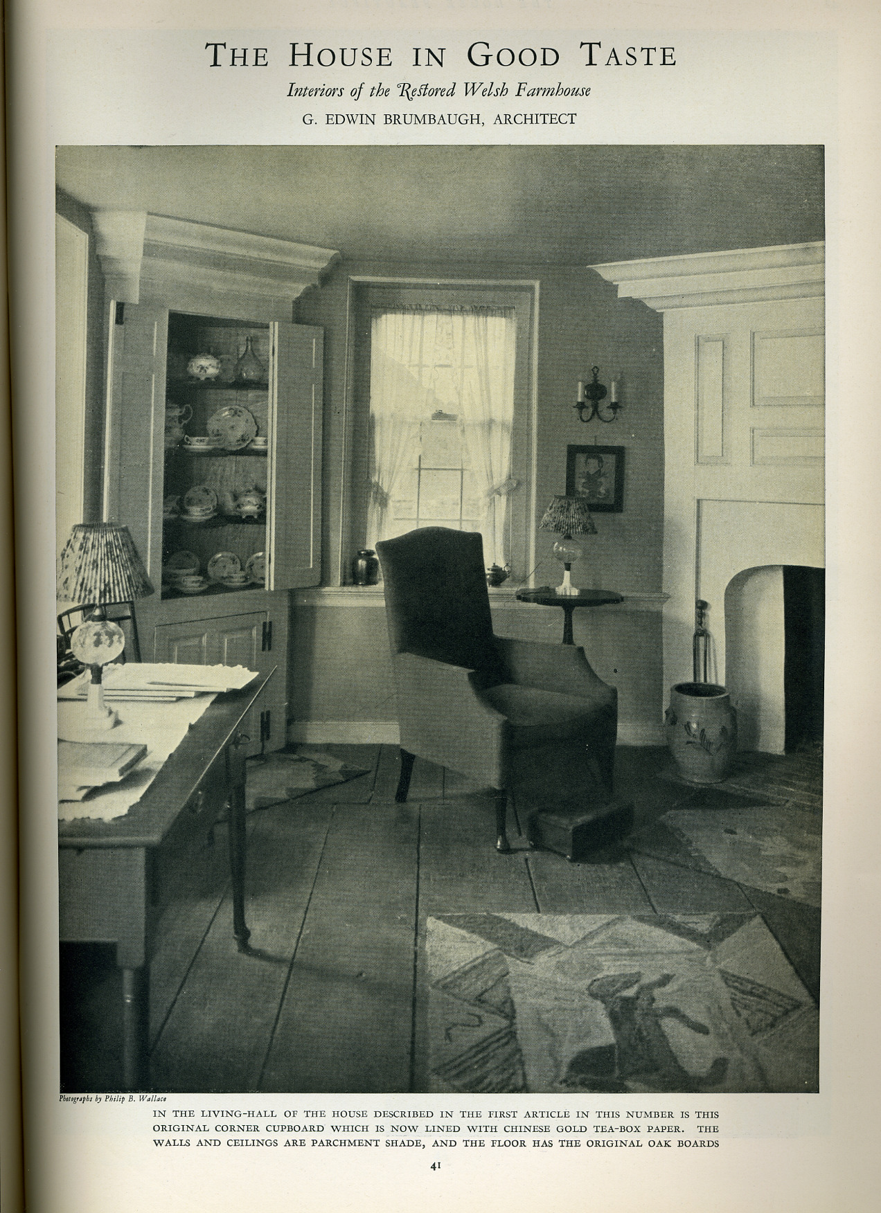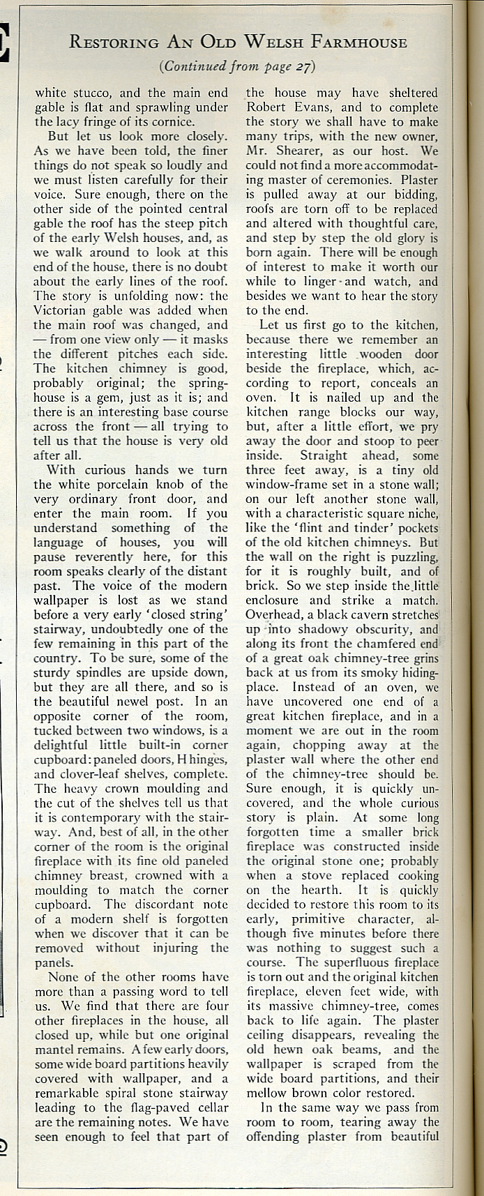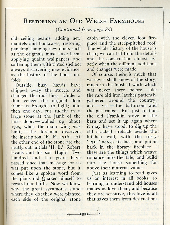 seventeenth century Welsh dwellings. This article below is from the magazine "The House Beautiful", January 1927 and was entitled "Restoring an old Welsh Farmhouse". After opening a page,