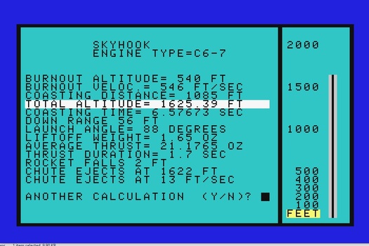 the 1980s and sold by Estes Industries. The program, which runs in BASIC,