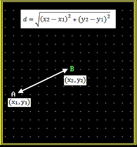 DistanceToGo = SQR((X2 - X1) ^ 2 + ((Y2 / 2) -