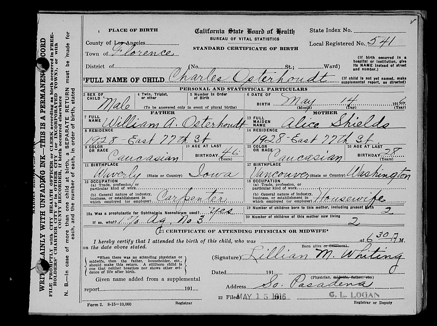 Osterhoudt; William, Alice, Wilda, Charles, Nora, Elmer,